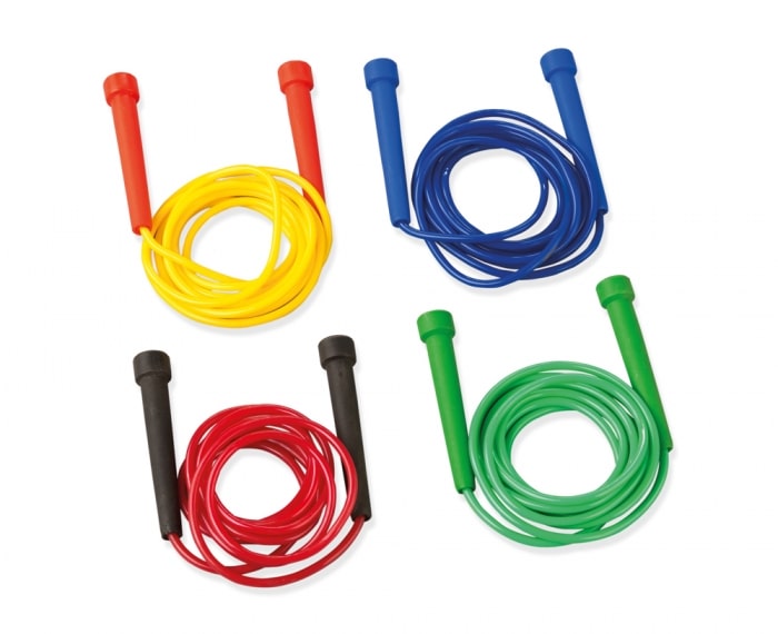 | Bauart | Farbiges Kunststoffseil mit stabilen Griffen. Kondition, Rhythmus und Gleichgewichtssinn werden mit diesem Seil gefördert. |
