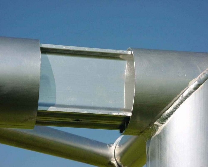 Tor- und Bodenrahmen aus hochwertigem Aluminium Ovalprofil 120 x 100 mm, Super stabil durch die verstärkte Innenprofilierung. Oberfläche Alu Silber. Abmessung 5,00 x 2,00 m.