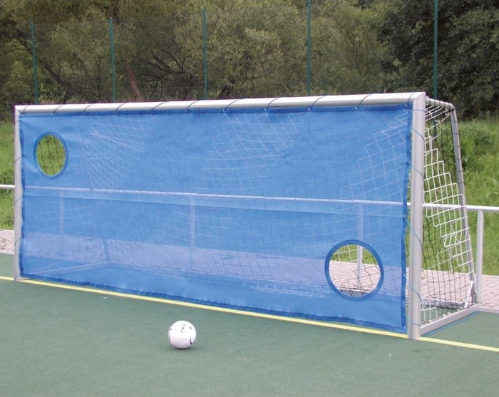 | Bauart | Aus PE-Gewebe ca. 200 g/m² Farbe blau. Mit 2 Ausschnitten ca. 50 cm Durchmesser und 3 Seiten mit Oesen versehen. Lieferung mit Isilinkleinen zur einfachen Befestigung. |
